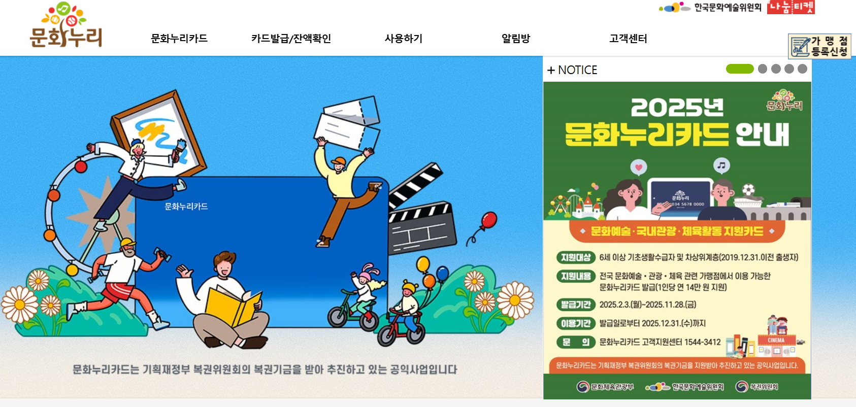 사용처를 사전에 확인하려면 문화누리카드 홈페이지 > 가맹점 검색 메뉴를 활용하면 좋아요.